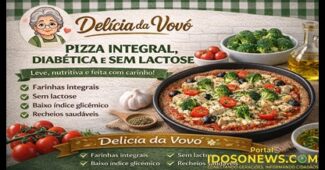 Delícias da Vovó Pizza Integral Adaptada. idosonews4 de março de 20260 Olá, a nossa coluna DELÍCIAS DA VOVÓ, traz hoje a Pizza Integral, Sem Lactose, Adaptada e Nutritiva, leve e com...
