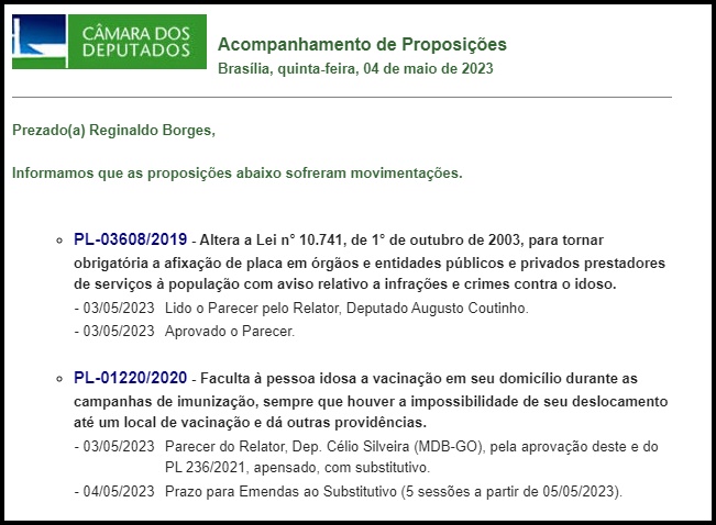 Saiba por onde tramita as Proposições referentes ao segmento da pessoa idosa na Câmara dos Deputados. Lembre-se Idoso conectado é idoso informado. Cobre de seu Deputado uma posição sobre o assunto. Se ele não tem interesse sobre nele, aconselho que está na hora de escolher um deputado que seja solidário a causa do envelhecimento.
