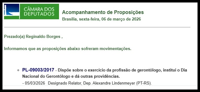 A tramitação do Projeto de Lei nº 9003/2017, que dispõe sobre o exercício da profissão de gerontólogo e institui o Dia Nacional do Gerontólogo, representa um avanço significativo no reconhecimento de uma área cada vez mais essencial para a sociedade brasileira. Com o envelhecimento acelerado da população, cresce também a necessidade de profissionais especializados no estudo do envelhecimento humano e na promoção de políticas, práticas e serviços voltados à pessoa idosa. Nesse contexto, a designação do deputado Alexandre Lindenmeyer como relator e a manutenção de seu parecer favorável ao projeto, com substitutivo que incorpora também o PL nº 6.764/2016, sinalizam um passo importante para a valorização dessa profissão.