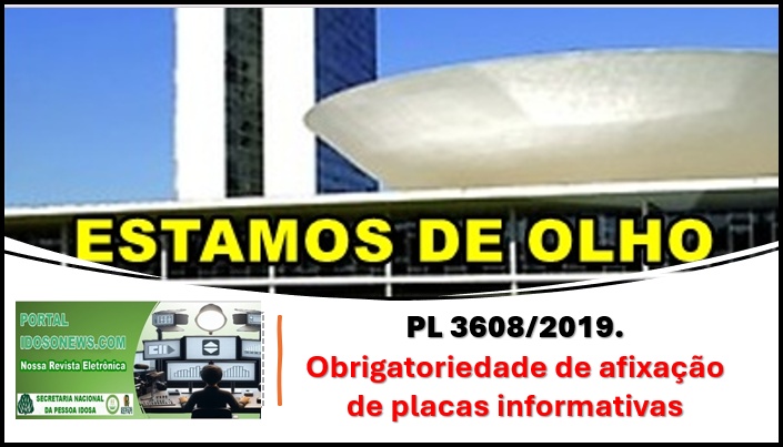 O Projeto de Lei nº 3608 de 2.019 propõe uma alteração importante no Estatuto da Pessoa Idosa (Lei nº 10.741 de 2.003) ao tornar obrigatória a afixação de placas informativas em órgãos e entidades públicas e privadas que prestam serviços à população, alertando sobre infrações e crimes cometidos contra a pessoa idosa.