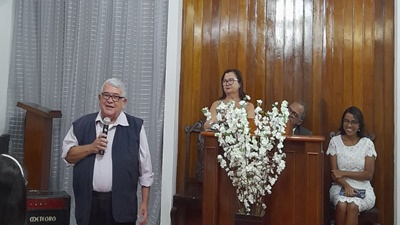 O Secretário Nacional, parabenizou a SAF aniversariante. em nome da Secretaria Nacional, agradecendo a Deus pela vidas das irmãs e destacando os trabalhos que elas realizam no bairro, e que eles se aglutinam as ações espirituais e matérias da Igreja Presbiteriana do Brasil.